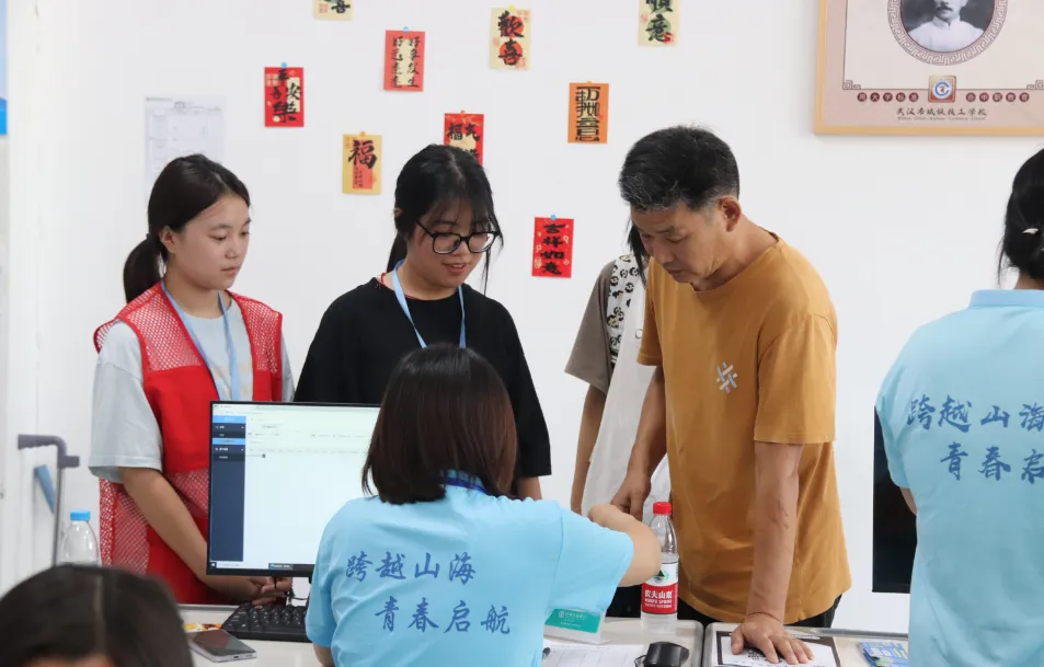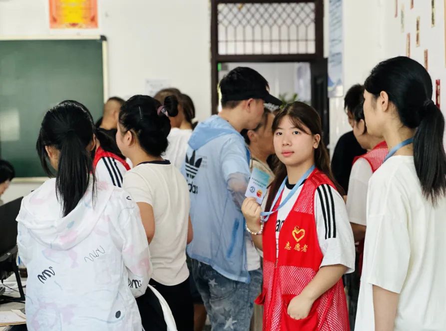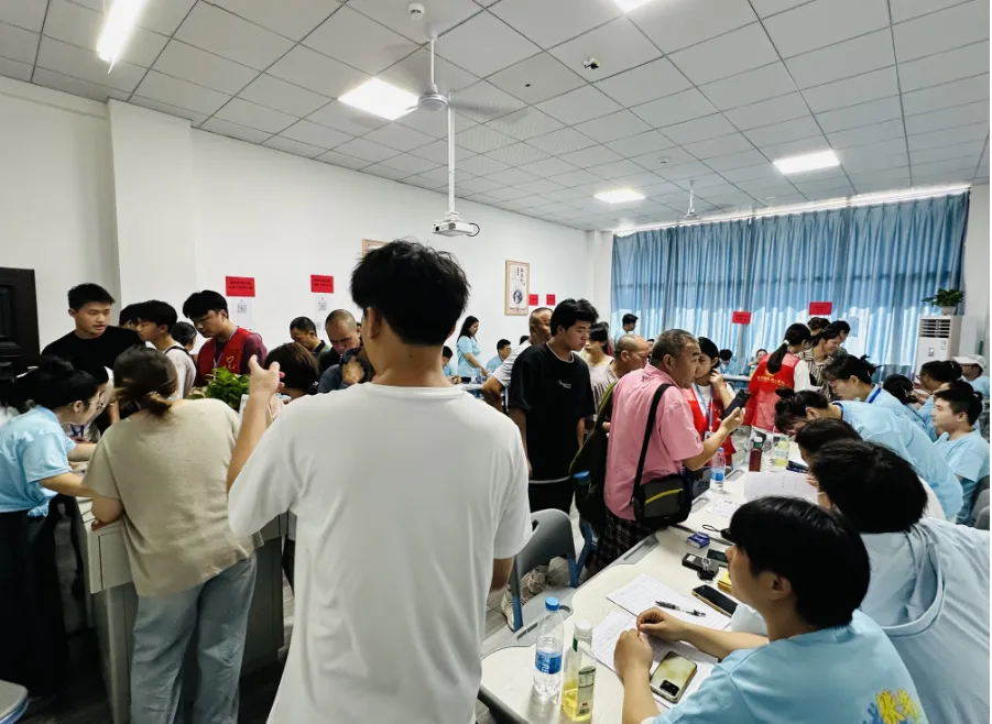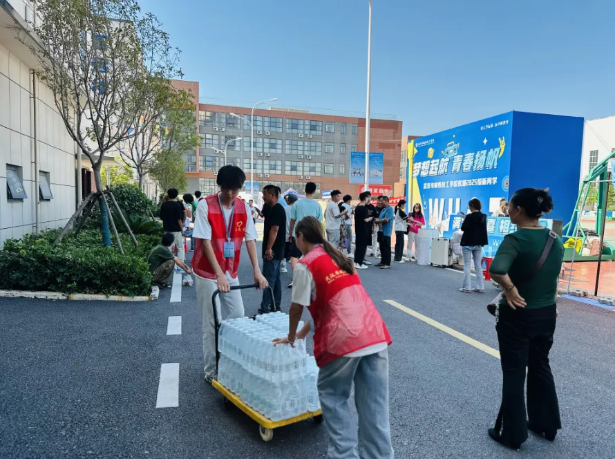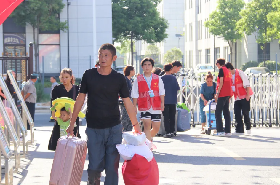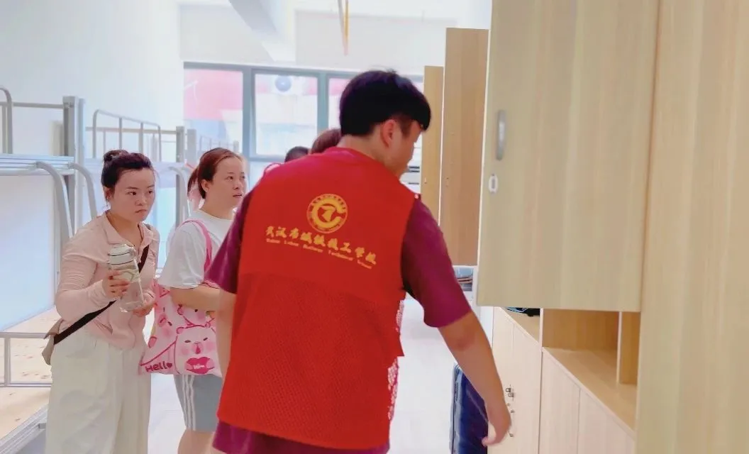 武汉市城铁技工学校青年志愿者协会的学长学姐们,是迎新现场最亮眼的 “红色风景线”。他们身着统一的红色志愿者服装,早早就在校门口、报到点等关键位置等候,脸上挂着灿烂的笑容。看到新生提着大包小包的行李,他们会立刻上前主动帮忙。从校门口到报到大厅,从宿舍楼下到教学楼,他们一遍遍往返,耐心解答新生和家长的问题,让初来乍到的新生们瞬间感受到武汉城铁的温暖。