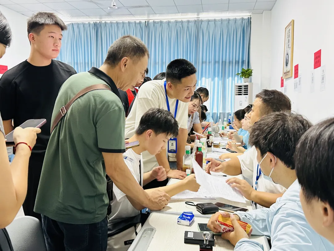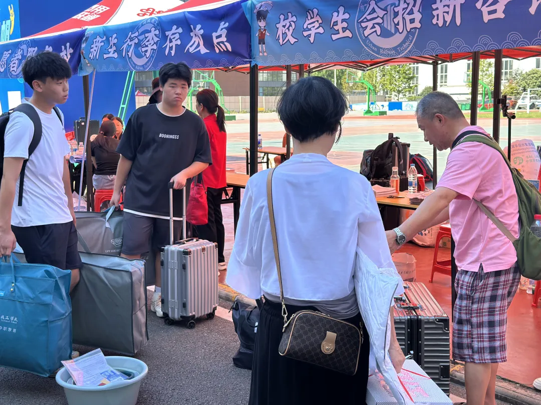 报到日一大早,学校各部门的老师和志愿者们就已全部到位,有条不紊地做好迎新准备。迎新过程中,老师们各司其职,以饱满的热情接待每一位学生和家长。