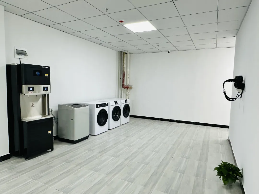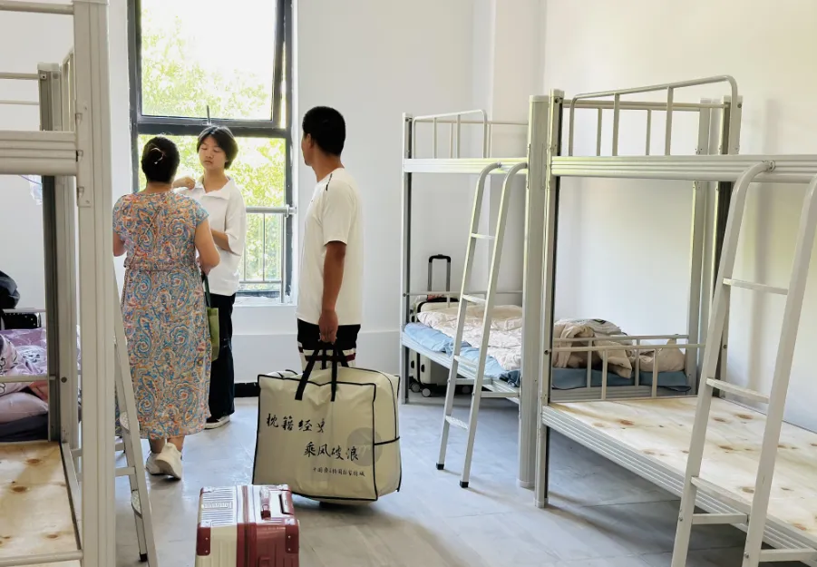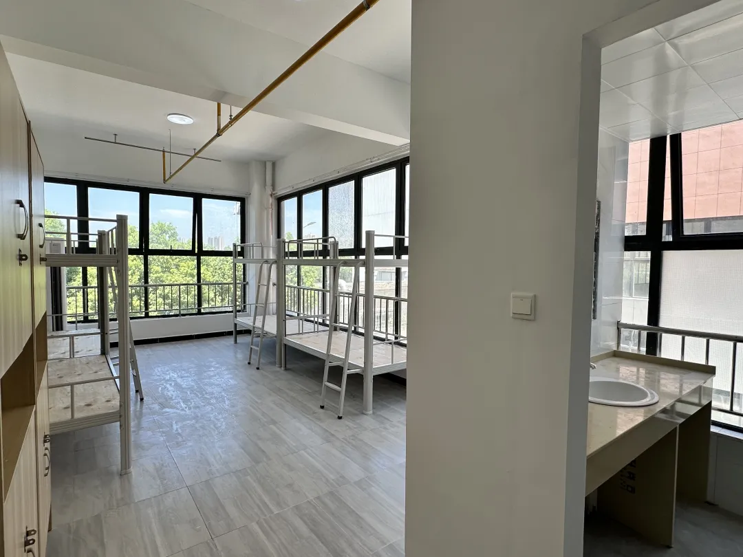 本次开学启用的新宿舍宽敞明亮,共设有四人间、六人间、八人间,每个房间配备独立空调,木质衣柜等,为宿舍增添了一份自然与温馨。干湿分离的卫生间,十分方便,宿舍整体干净通透。每层配备饮水机、洗衣机等生活配套设施,满足了同学们的日常生活需要。