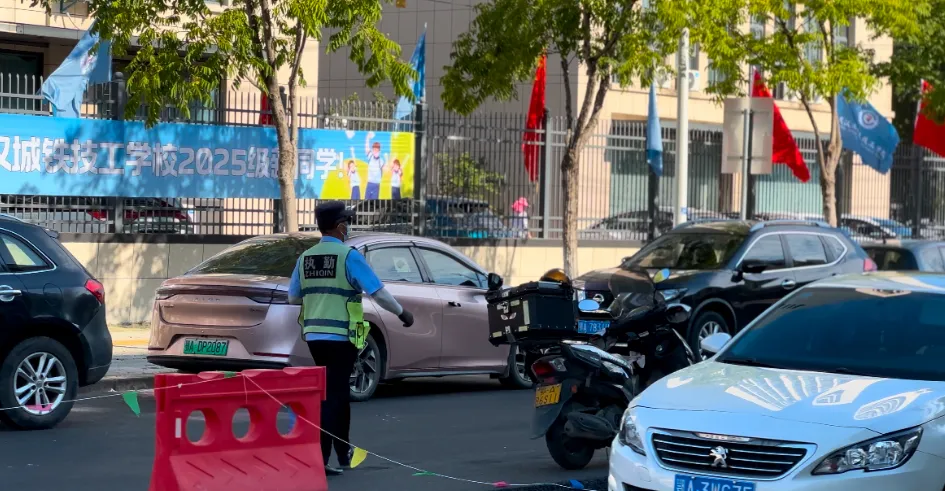 为了保证新生及家长的安全,武汉市城铁技工学校邀请交警叔叔协助本次新生报到交通指挥,在校门口为学生的安全出行保驾护航,保证交通安全,车辆有秩序停放。
