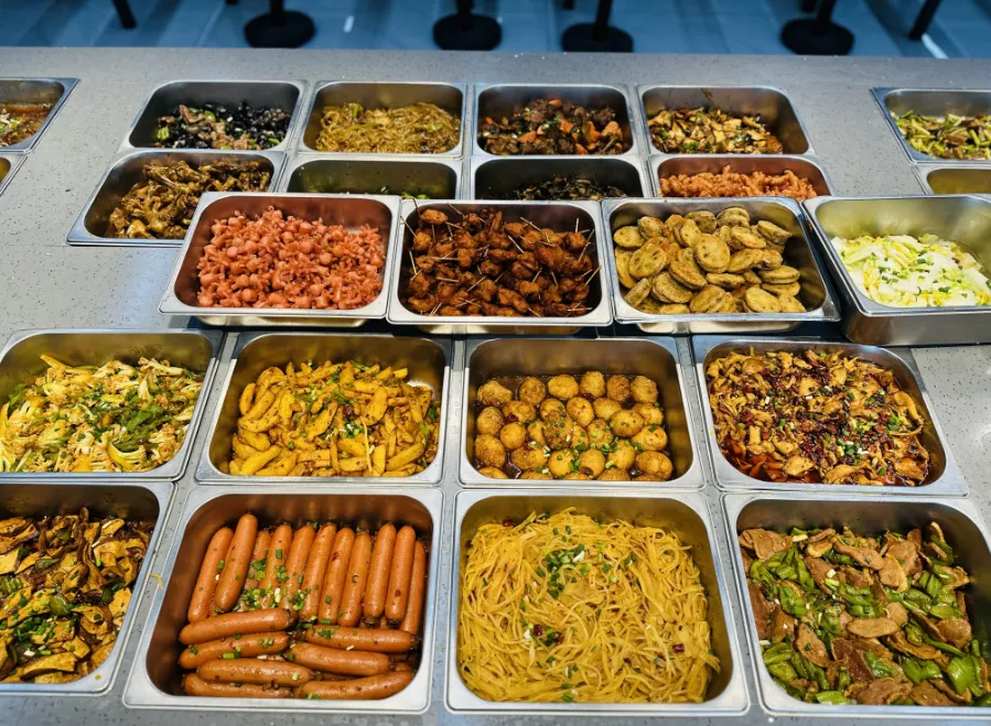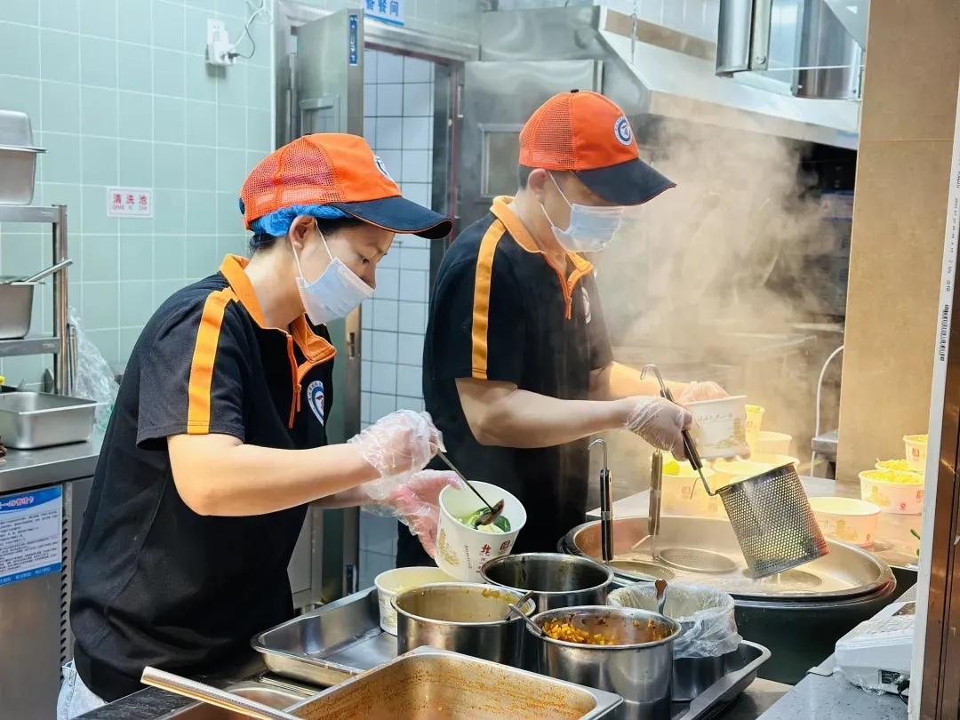 学校食堂提前备好丰富美味的菜品,番茄炒蛋酸甜可口、清炒时蔬鲜嫩爽口,还有软糯的米饭和温热的汤品,满满当当摆放在餐台,等待新同学的品尝!忙碌一上午的新生和家长来到食堂,在鲜香的口感中补充能量,感受城铁校园饮食的贴心与美味!