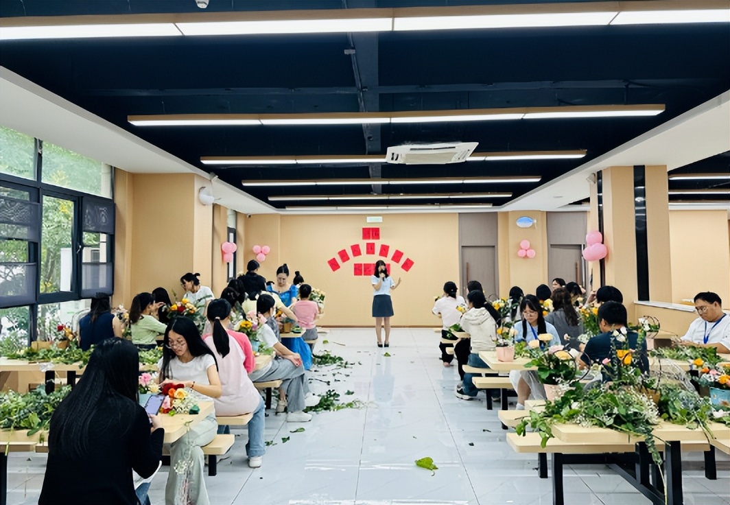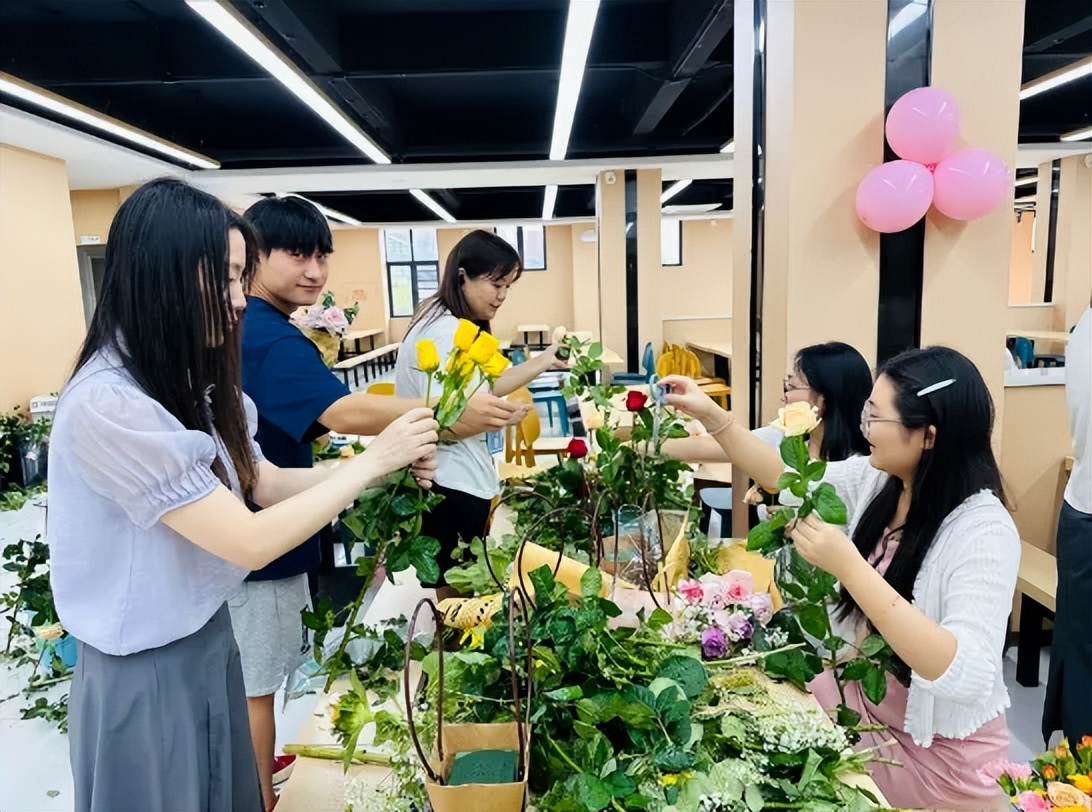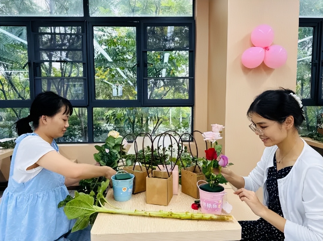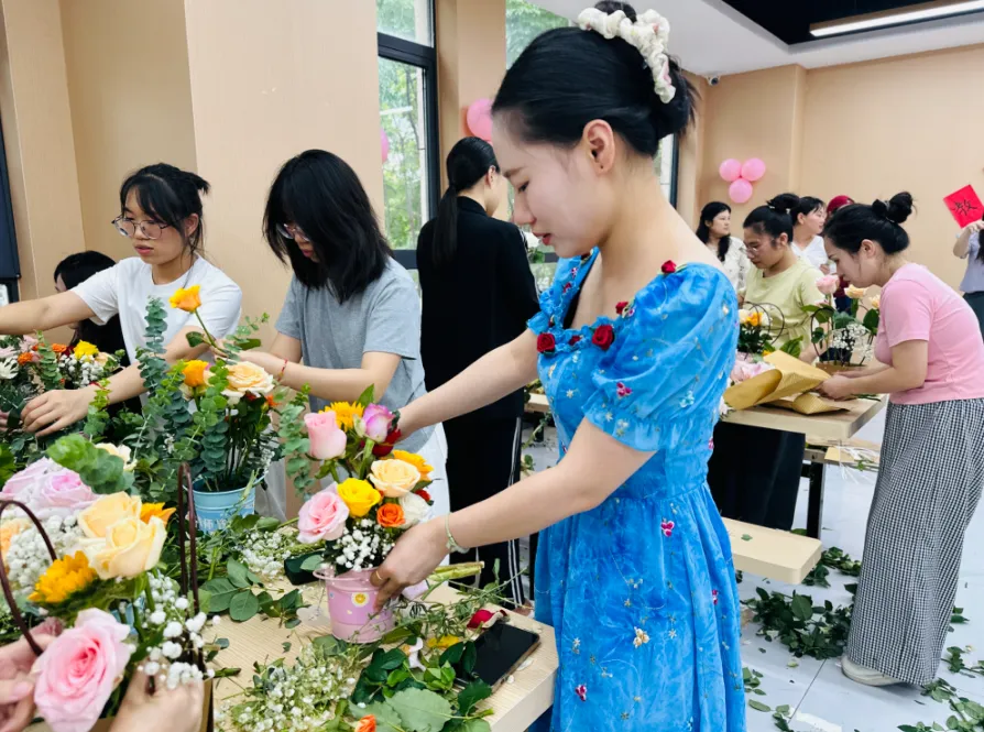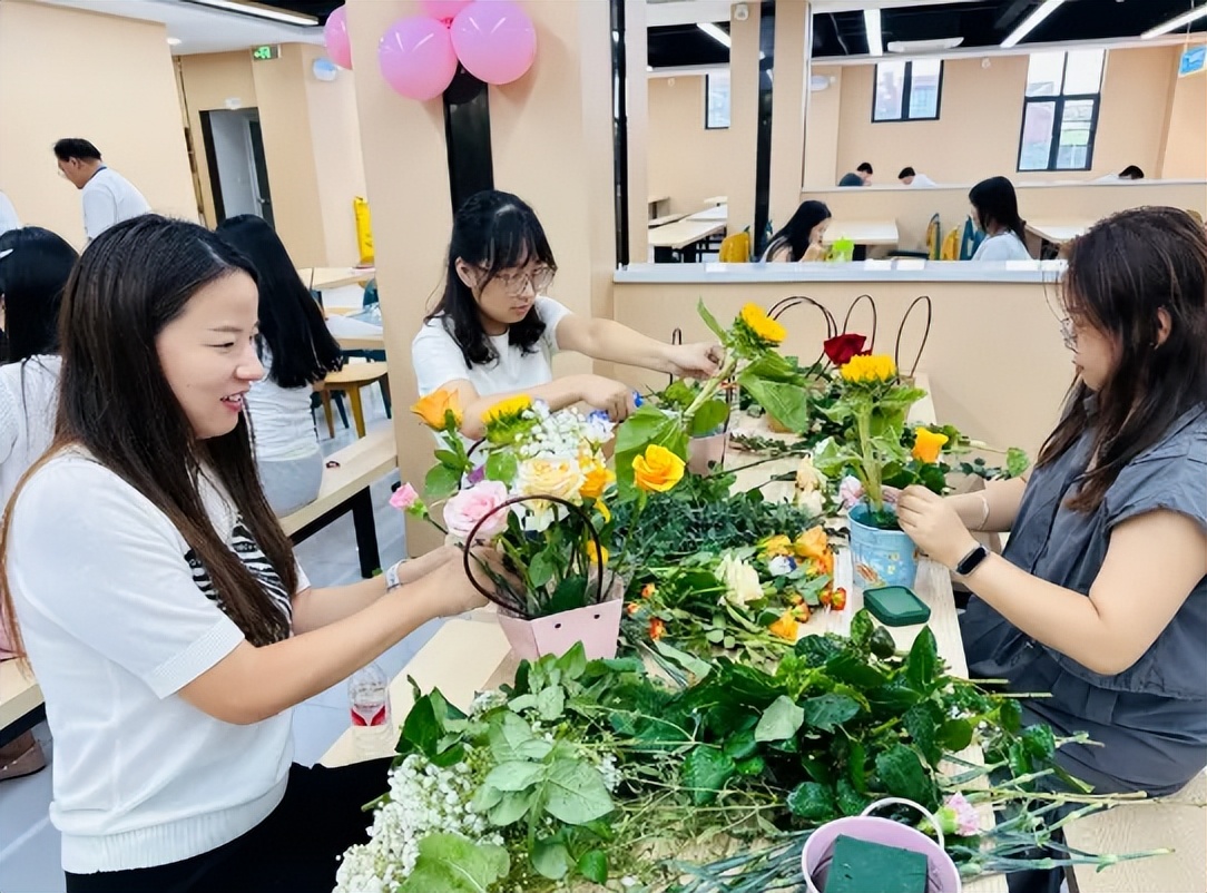 指尖流转间,活动现场满是花香,也充满了老师们的欢声笑语,平日里站在讲台上传道授业的身影,此刻在花束旁更添了几分温柔。