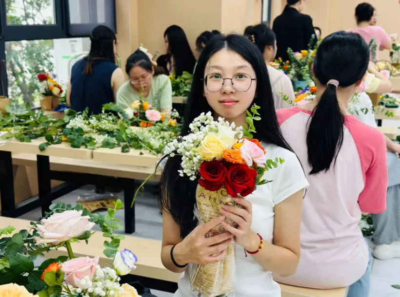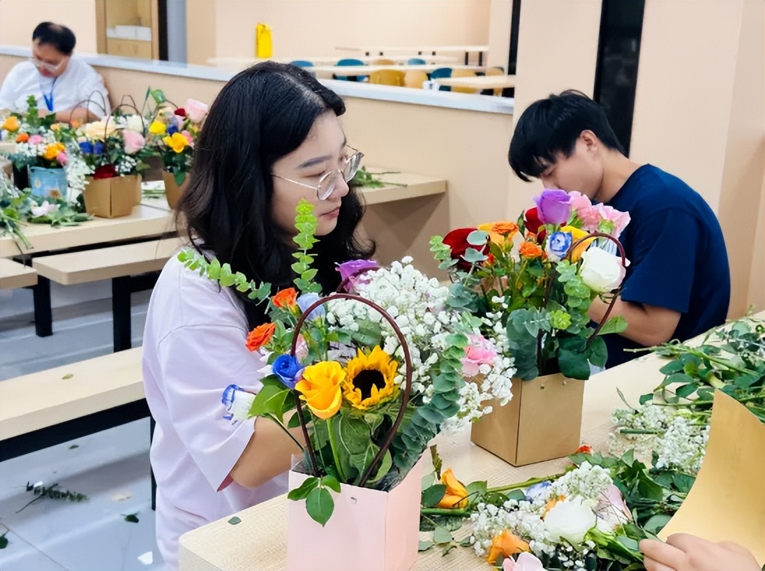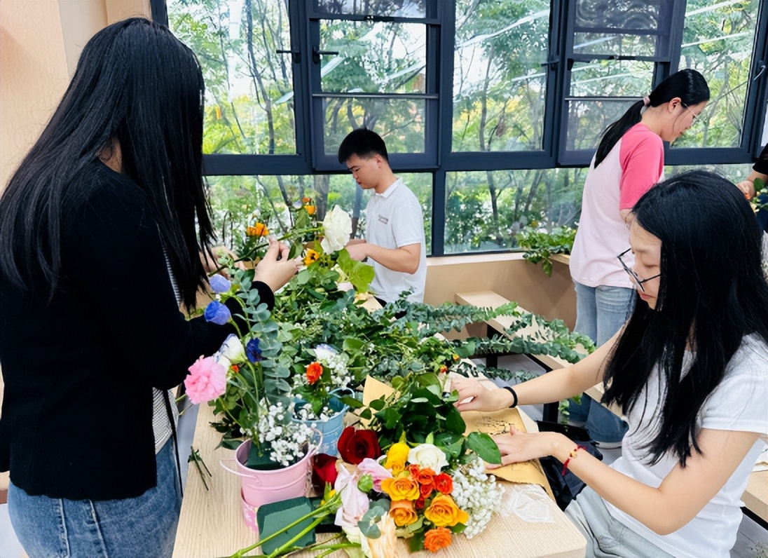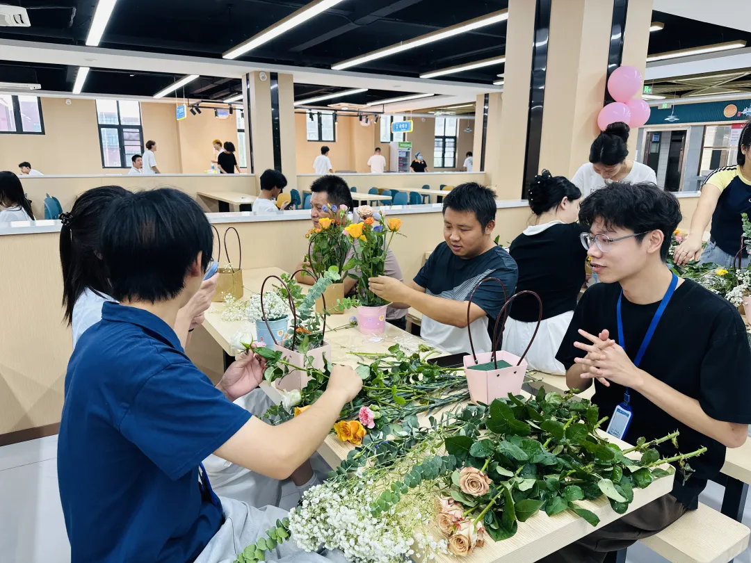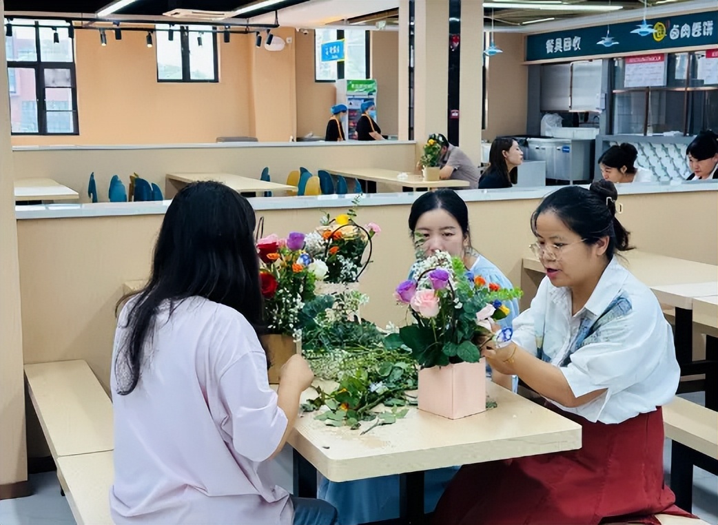 指尖流转间,活动现场满是花香,也充满了老师们的欢声笑语,平日里站在讲台上传道授业的身影,此刻在花束旁更添了几分温柔。