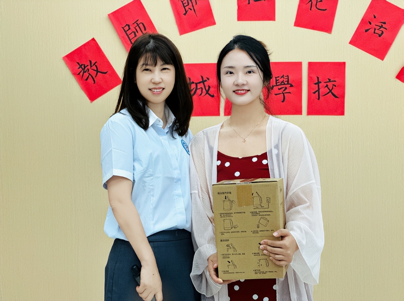 致辞结束后,现场还迎来了一个温馨小插曲 —— 教师节当天恰逢教务处魏老师生日,学校特意为她送上了精心准备的生日礼物, 魏老师接过礼物,感动地说:“这是我收到过最特别的教师节和生日礼物,太温暖了!”