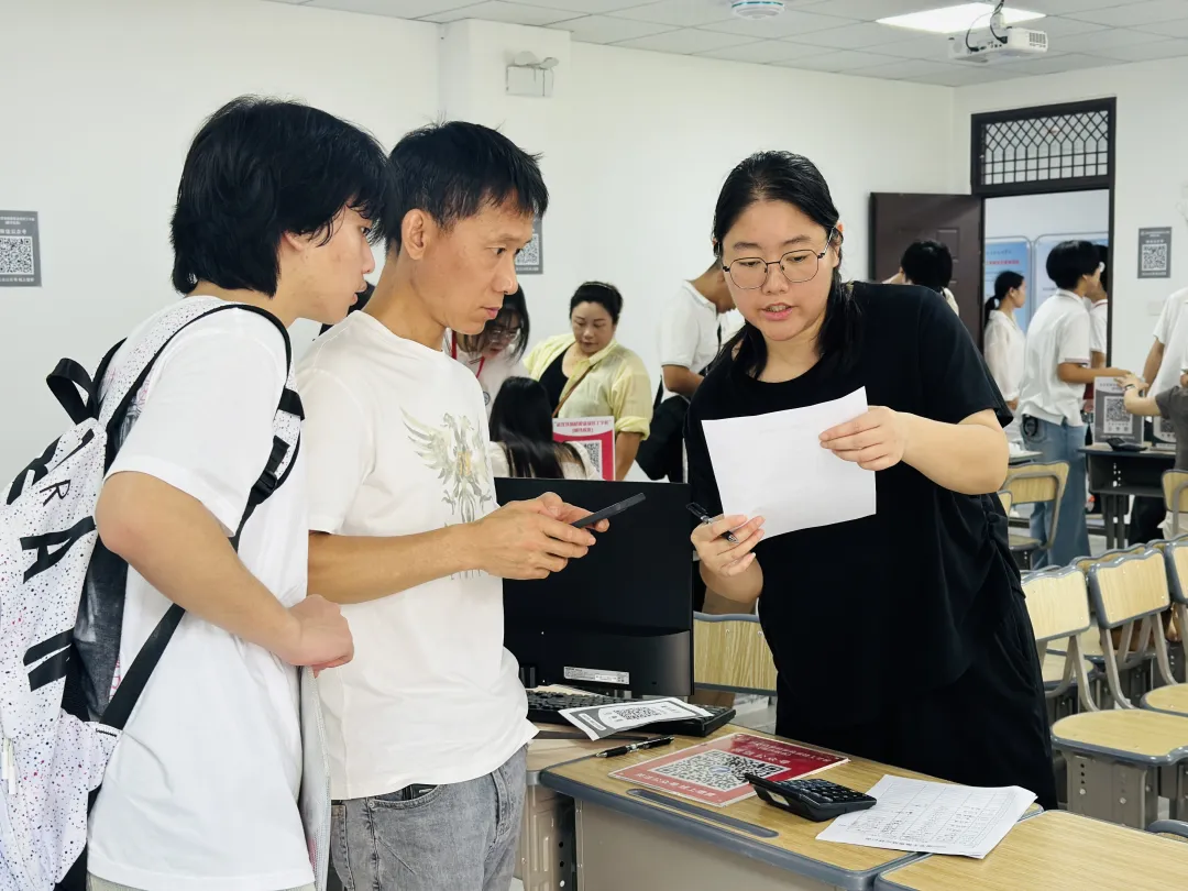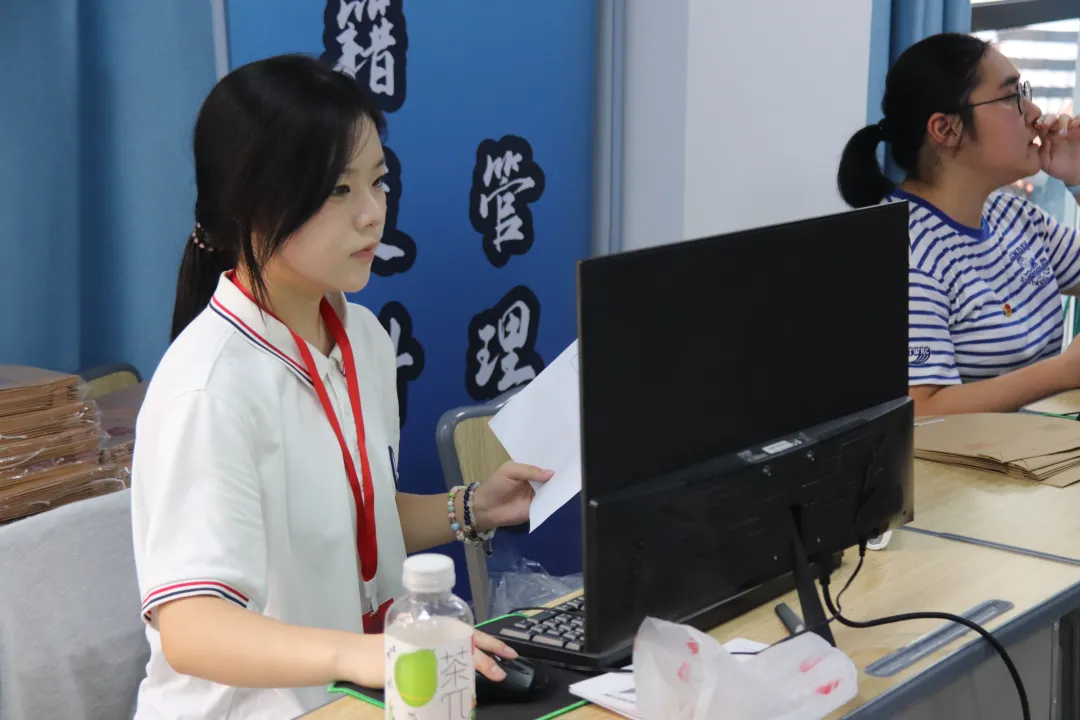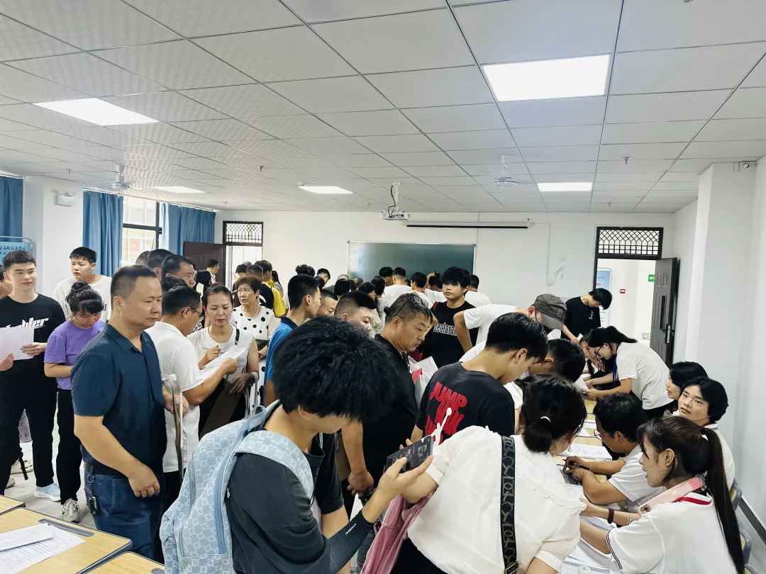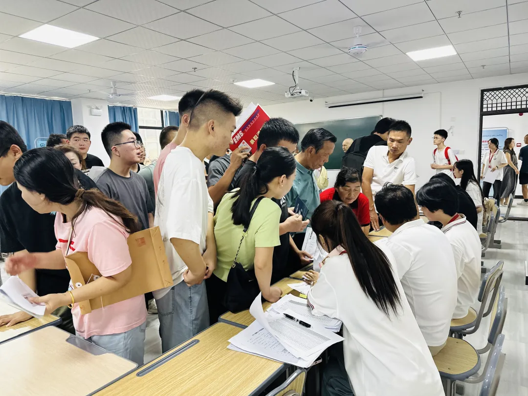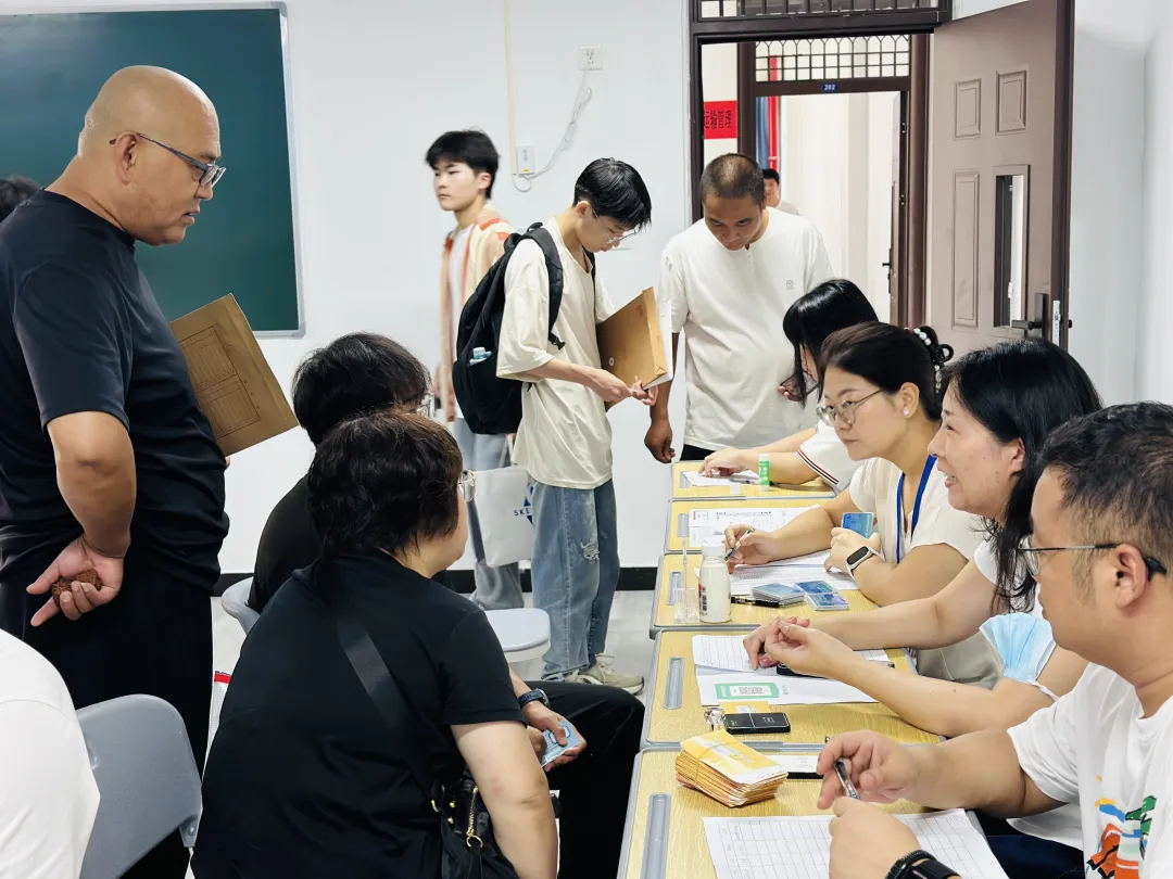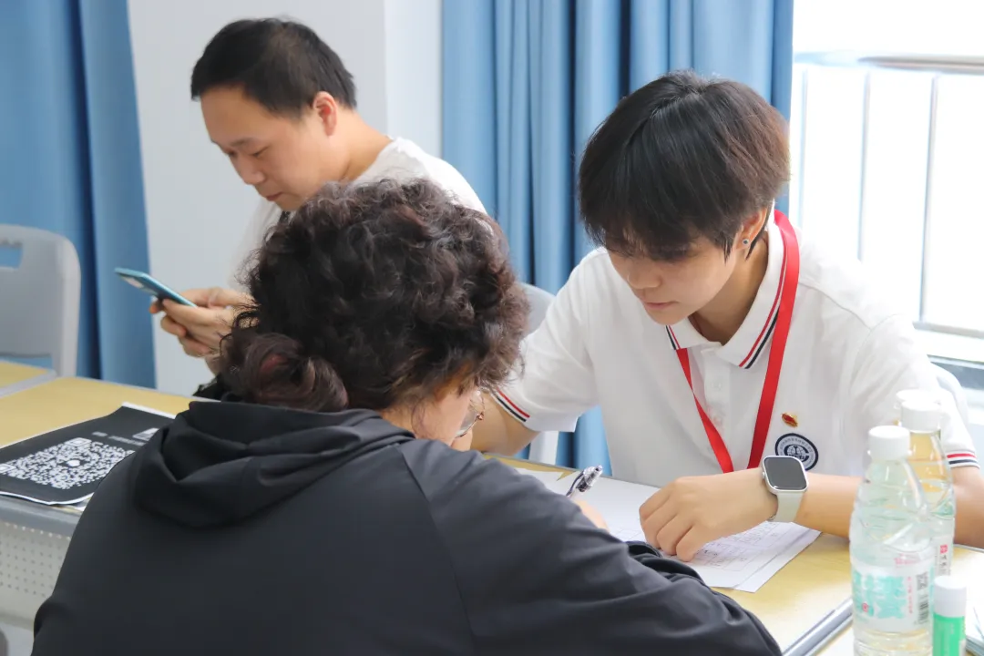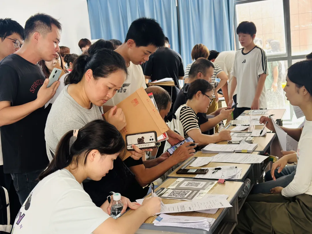 各部门通力协作,以高度的责任心和饱满的热情,全力确保迎新各项工作安全、有序、高效进行,让新生从踏入校门的第一刻起就感受到“家”的温暖。报到开始后,老师和志愿者们有的引导家长和新生前往各班级报到点,有的帮忙搬运行李,有的协助新生填写登记信息、领取校园卡。面对家长和新生提出的报到流程、校园设施位置等问题,负责迎新的老师和志愿者们一一耐心解答,保障报到有序推进。