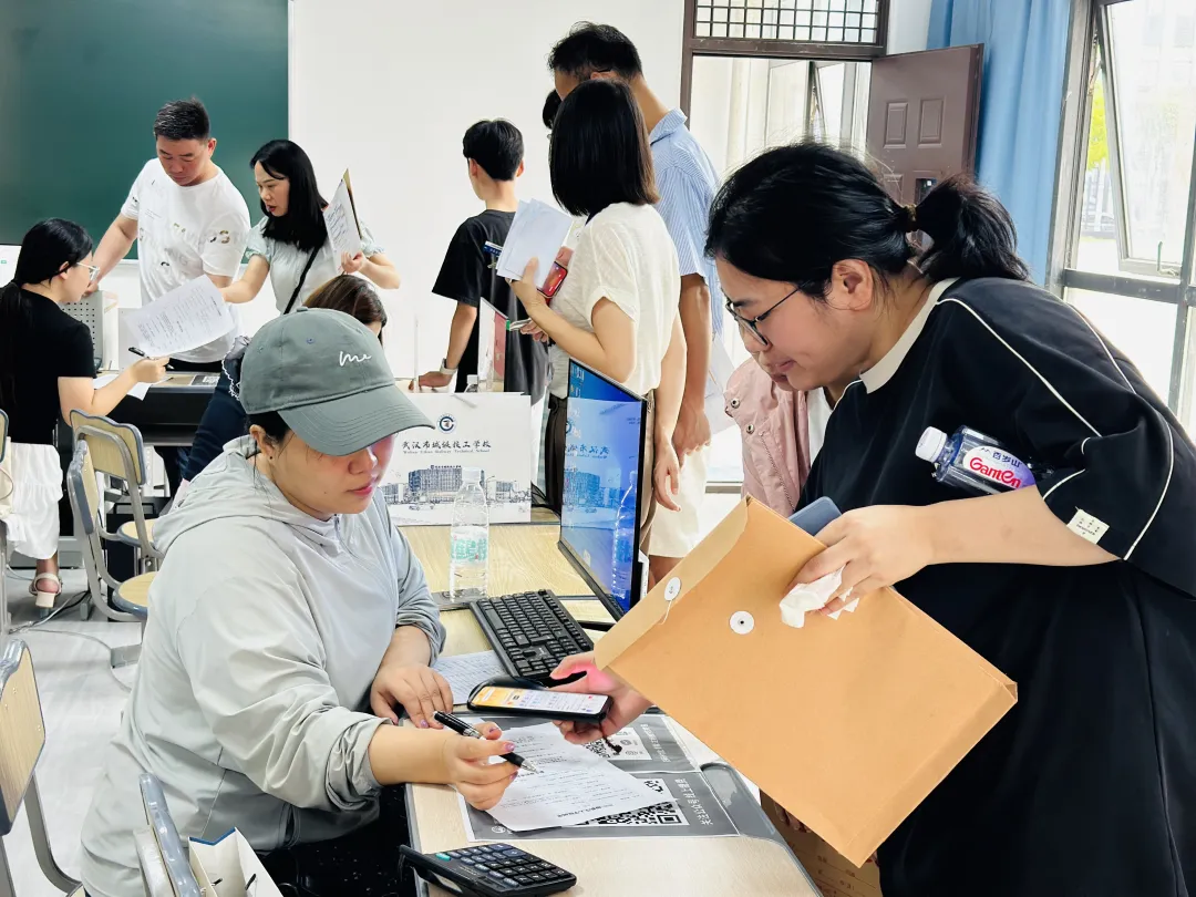 武汉市城铁技工学校董事长、校长吴传菊来到迎新现场,查看各环节进展,与工作人员交流迎新细节,叮嘱做好服务保障,确保新生顺利完成报到、快速适应校园环境。