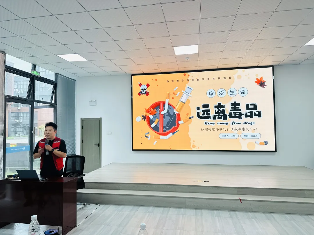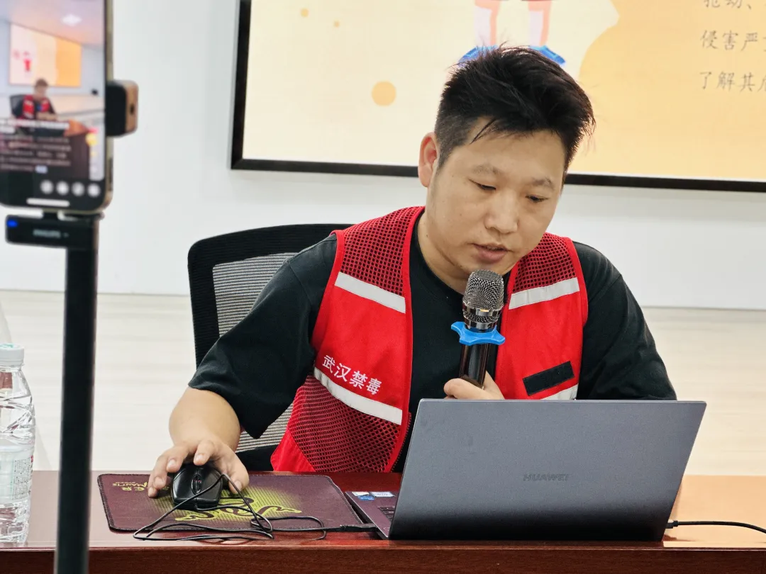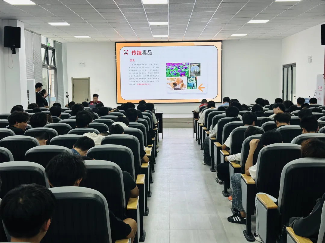 接着纱帽街禁毒中心的王炫警官通过播放禁毒警示教育片、剖析真实案例,生动形象地揭示了毒品对个人、家庭和社会的多重危害,特别提醒师生警惕伪装成常见食品的各类新型毒品,并呼吁广大青少年保持警觉、坚决抵制诱惑!