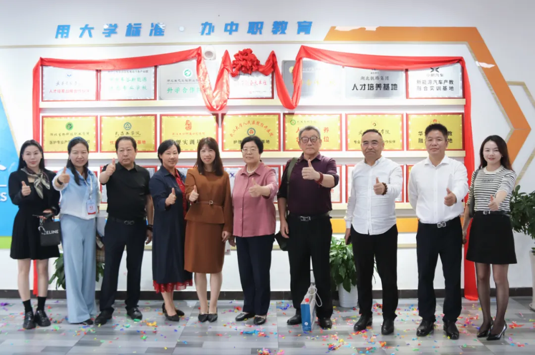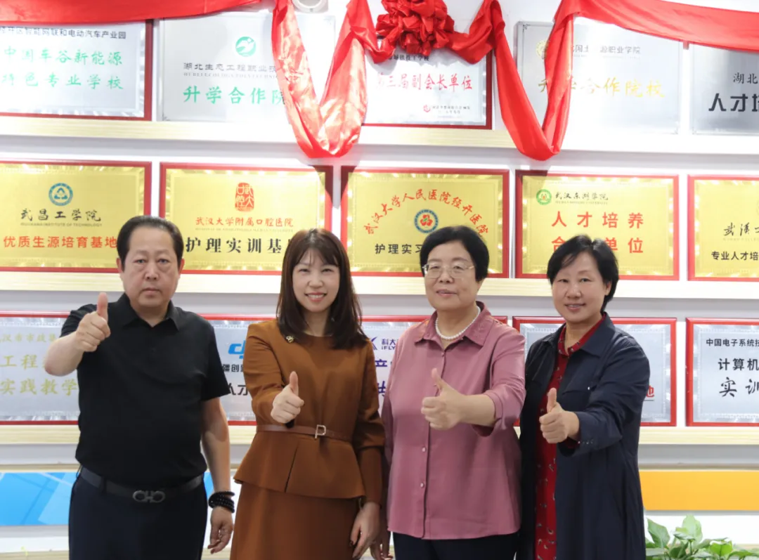 在座谈交流会结束后,大家一同移步永泽楼,共同见证了武汉市城铁技工学校成功当选为湖北省楚商联合会副会长单位简短而又隆重的揭牌仪式。湖北省楚商联合会执行秘书长程爱芬,原政协武汉市委员会副秘书长刘秀珍,武汉市城铁技工学校董事长、校长吴传菊,学校董事胡建平共同揭牌。