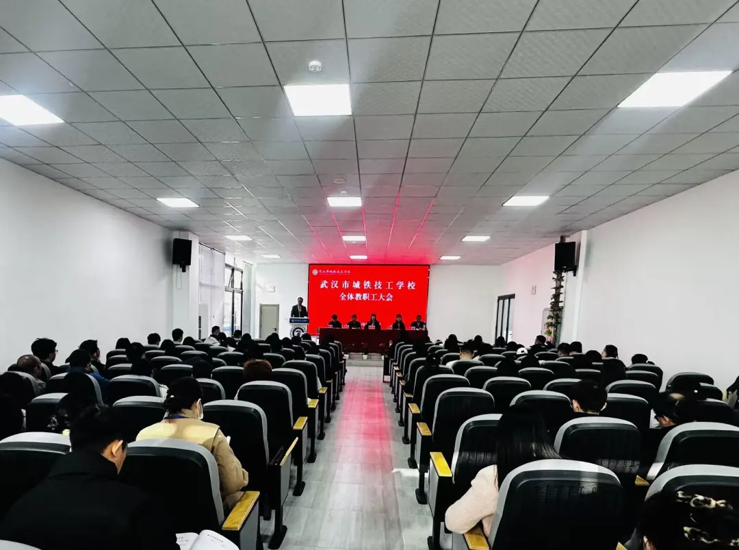 2025年11月25日,武汉市城铁技工学校隆重召开全体教职工大会。武汉市城铁技工学校董事长、校长吴传菊,以及校委会成员、学校各部门负责人、全体教职工及驻校教官参会,总结近期工作、部署下一阶段重点任务,进一步统一思想、明确方向,携手推动学校各项工作再上新台阶,为学校高质量发展凝聚共识、汇聚力量。