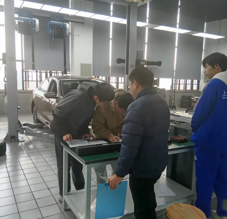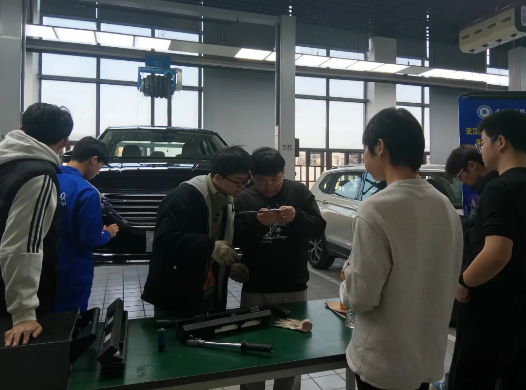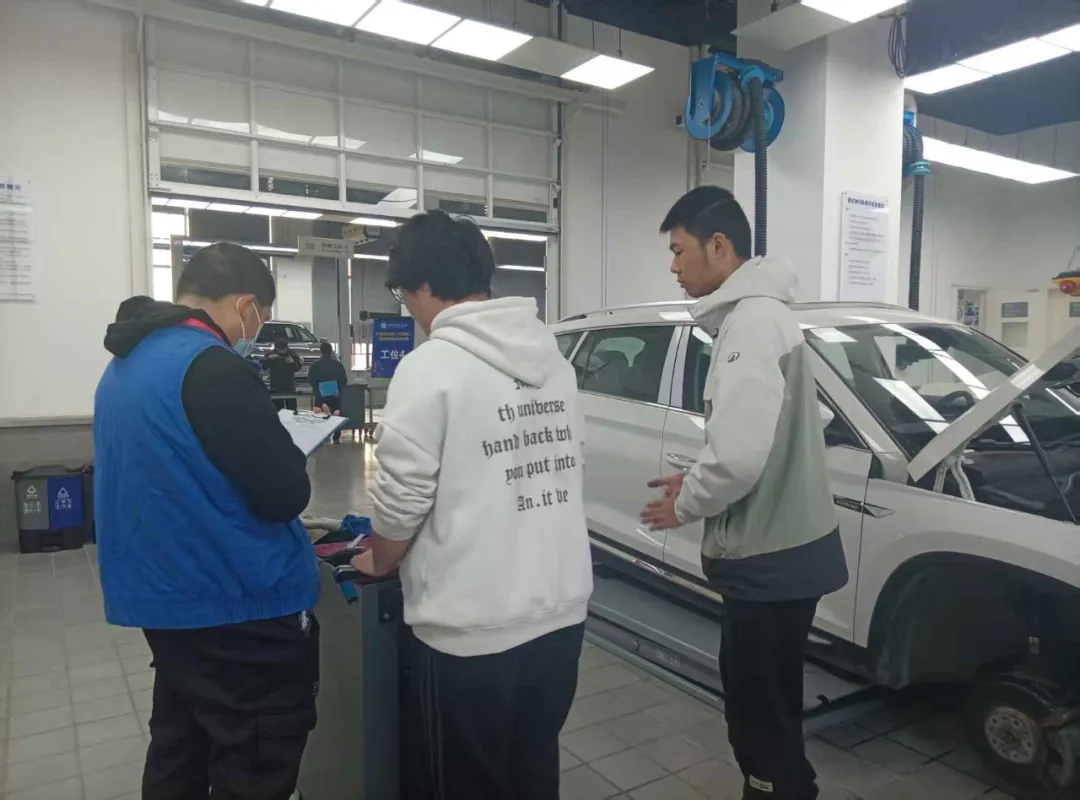 实操考试现场,考生们分组围绕实训车辆展开操作,监考老师针对考生的操作步骤、故障诊断思路等进行细致评判,同学们沉着应对,将前期培训所学技能充分运用到考试中,展现了良好的专业素养和实操能力。