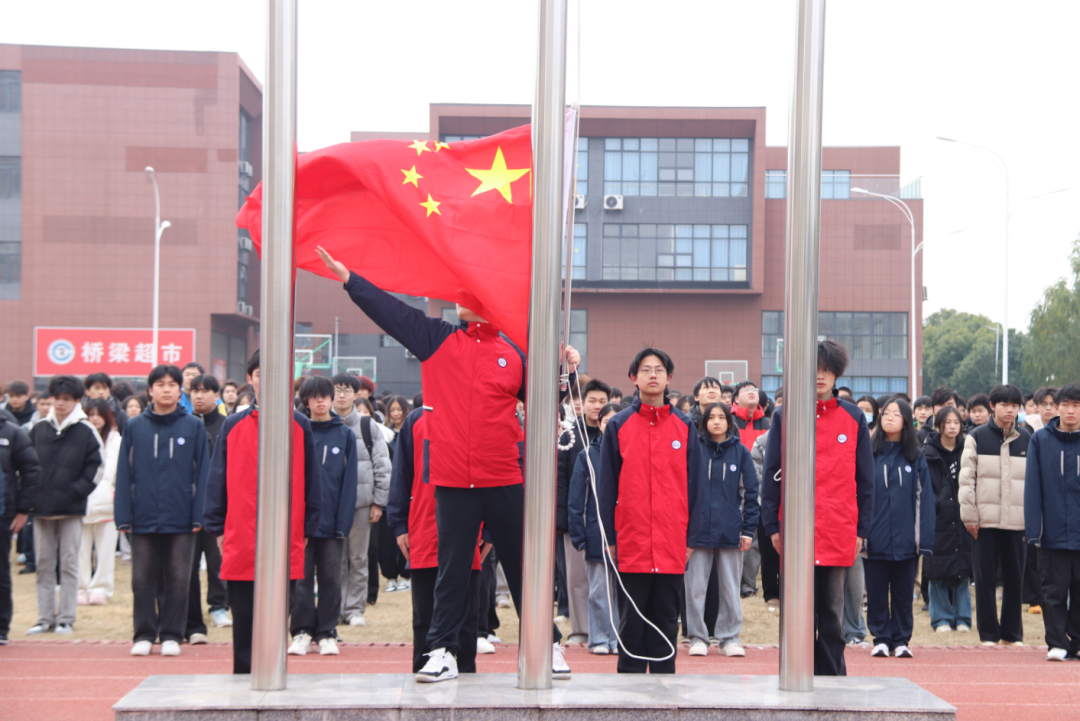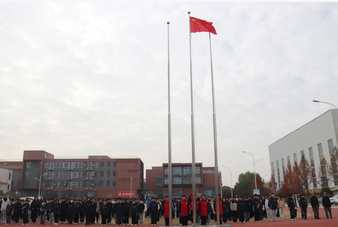 全体人员肃立致敬,面向国旗行注目礼,国歌嘹亮,庄严的旋律中,爱国情怀与奋进力量在每一位师生心中激荡。