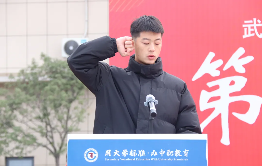 裁判员代表范松松老师、运动员代表2507班李奕轩同学依次上台宣誓,承诺将秉持公平公正原则执裁、恪守体育精神参赛,为运动会的顺利开展筑牢根基。