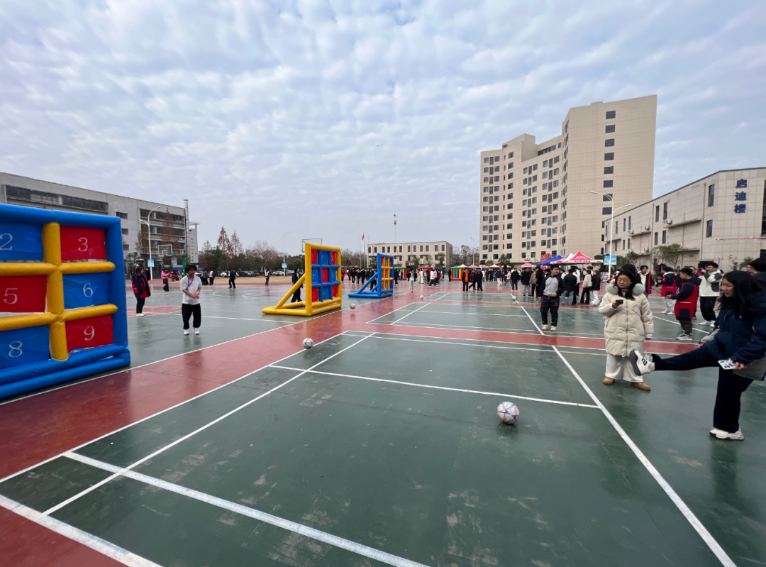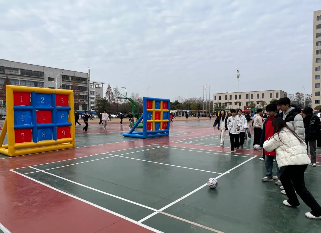 足球九宫格前热闹非凡,学子们瞄准目标稳稳射门,眼神专注、脚法精准。随着足球应声击中目标格,现场瞬间响起阵阵欢呼,每一次射门都尽显大家对运动的热爱。