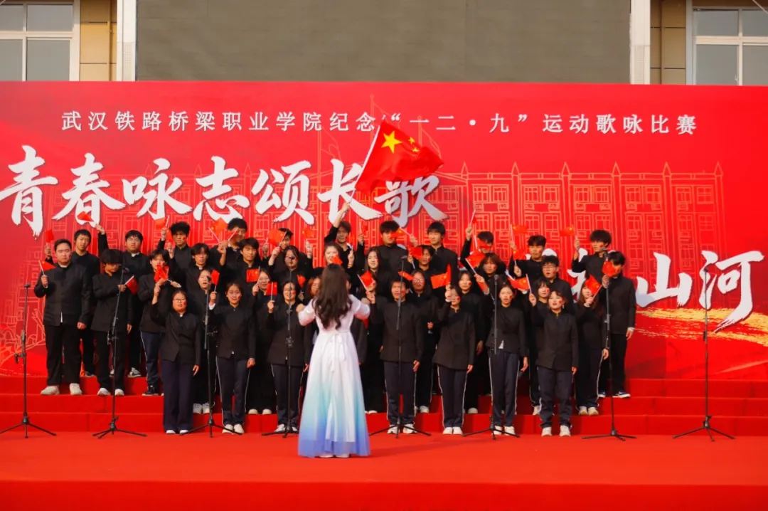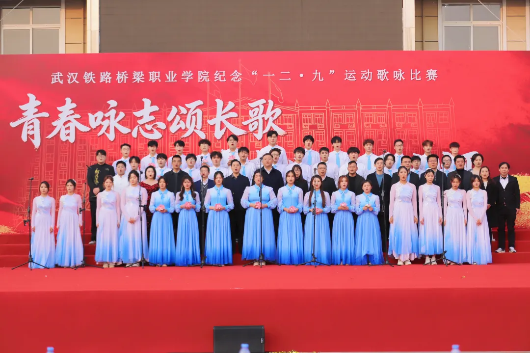 表彰大会结束后,“一二·九”歌咏比赛在激昂的氛围中拉开帷幕,各参赛队伍全情投入、倾情演绎,以青春之声传承红色基因,用经典旋律凝聚奋进力量。吴校长全程认真观摩,沉浸式感受武汉铁路桥梁职业学院师生的精彩节目表演。