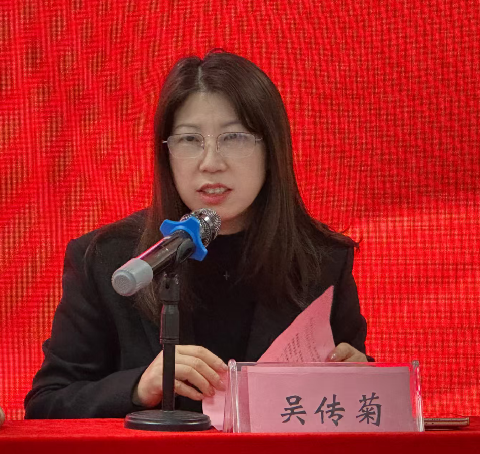 新当选的妇联主席吴传菊同志代表执委会进行表态发言,她首先对钟副主席的到来表示热烈欢迎,并对大家的信任表示衷心感谢。随后,她介绍了我校女性师生占比情况,肯定了女教职工、女学生在学校发展中的重要作用。吴主席表示:将带领新一届执委会,牢记使命、履职尽责,发挥桥梁纽带作用、搭建成长发展平台、营造关爱氛围,团结带领全校女性师生,立足学校大局、坚守妇联核心职能,在上级妇联的坚强指导下,切实当好女同胞的“娘家人”,助力女性师生实现自我价值,为学校高质量发展贡献巾帼力量,并向大家致以马年新春的美好祝福。