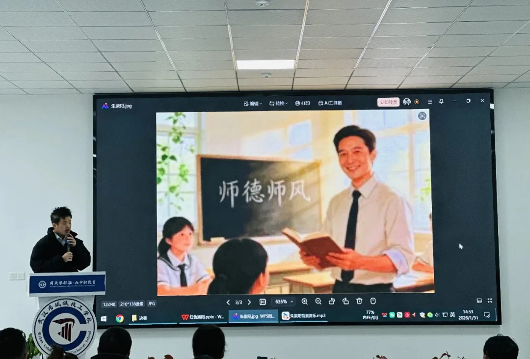 2026年1月31日,武汉市城铁技工学校“技高为师,身正为范——做城铁学子引路人”师德师风演讲比赛决赛顺利举行,从初赛中脱颖而出的9名教师同台竞技、各展风采,以真挚的情感、鲜活的事例诠释新时代技工教育工作者的责任与担当,全校教职工现场观摩学习,共沐师德清风、共铸育人师魂。
