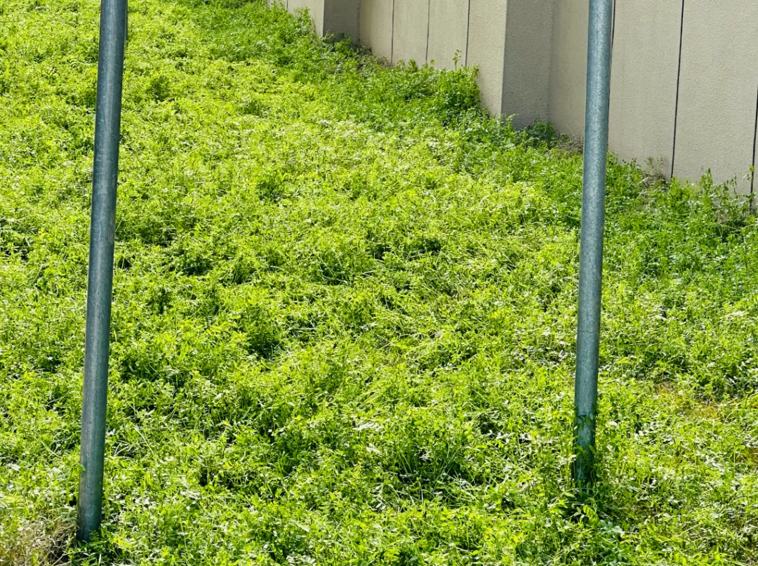 与门旁抽芽的绿植相映成趣