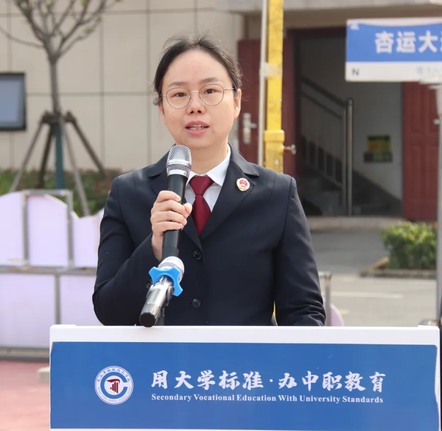 教师是学子成长路上的引路人,也是校园里最温暖的守护者。教师代表曹露老师上台发言,她结合自身多年教学和班级管理经验,着重强调了学好专业技能的重要性,她告诉同学们,在当下社会,技能就是立身之本,要凭真本事吃饭、靠硬技能立足。同时,她对同学们提出了三点希望:尽快同学们收心归位,专注课堂、勤学好问,不辜负宝贵时光;端正学习态度,刻苦学习,筑牢未来发展的根基;心怀善良与包容,珍惜同窗缘分,互帮互助、友善相处。最后,她鼓励全体师生珍惜春日好时光,脚踏实地努力耕耘,希望同学们未来能在实习岗位、技能赛场和考场上收获属于自己的成长与荣光!